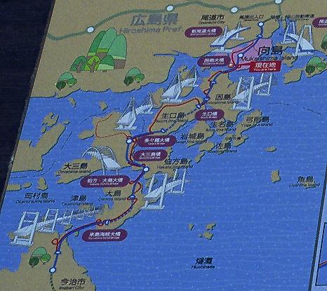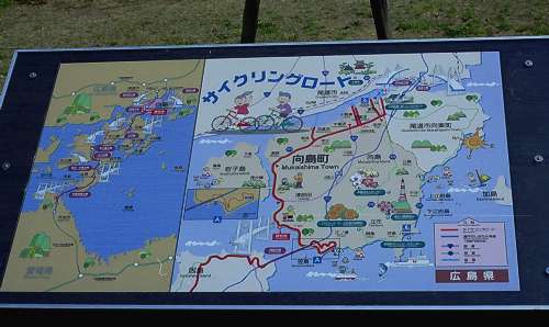 ちょうど尾道大橋のパーキングに案内板があったのでこれで説明しましょう。全図を拡大します